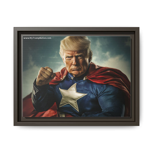 Donald Trump Patriotic Superhero Framed Canvas